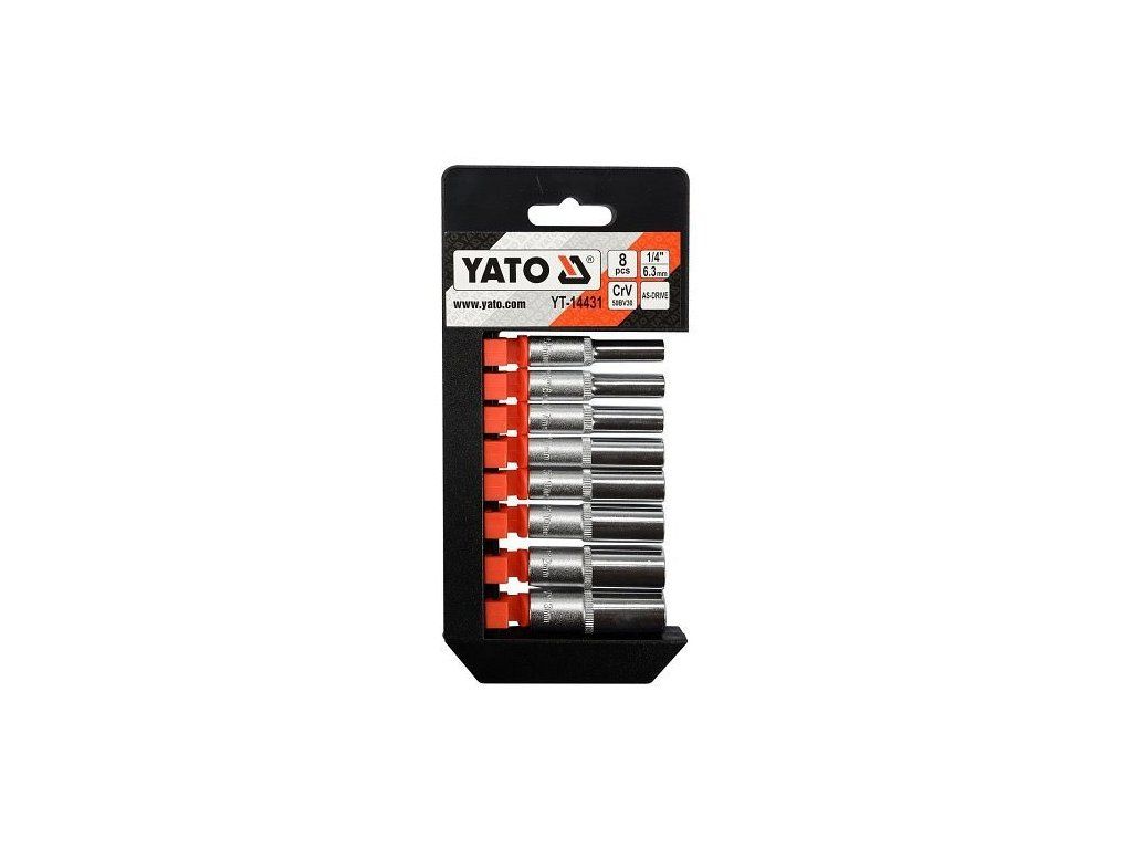 Sada šestihranných 1/4" nástavců YATO, hodících se především pro profesionální použití. Nástavce byly vyrobeny kováním, před kalením byly podrobeny kalibrací kontrolním zařízením s přesným měřením.