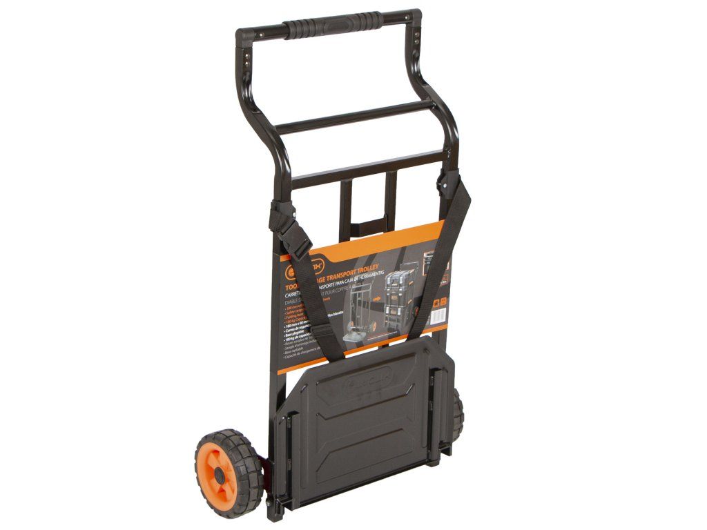 Skládací rudlík je vybaven pojistným popruhem pro zamezení převrácení kufrů s nářadím. Díky rudlíku je přemisťování sady kufrů snadné a pohodlné.