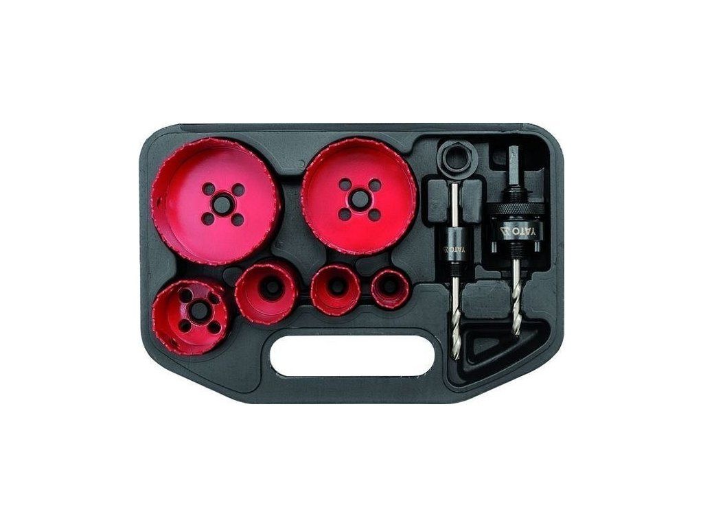 Praktická sada 8 ks vrtacích korunek s unašeči s kulatou stopkou a Hex zakončením.