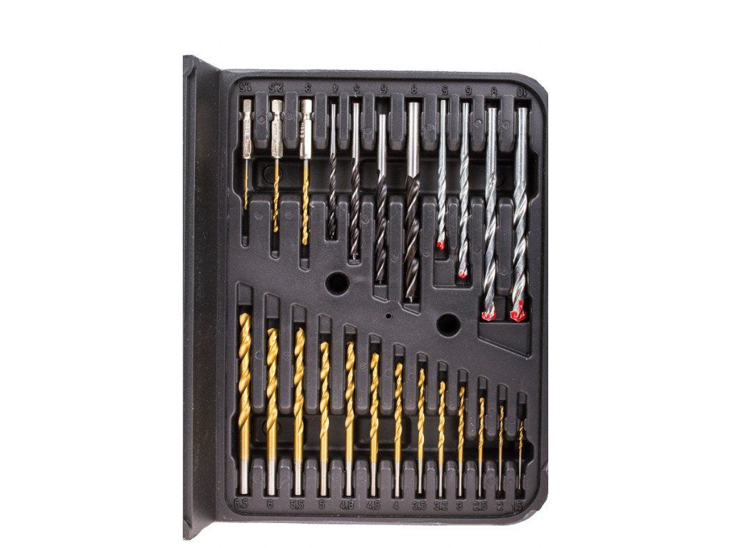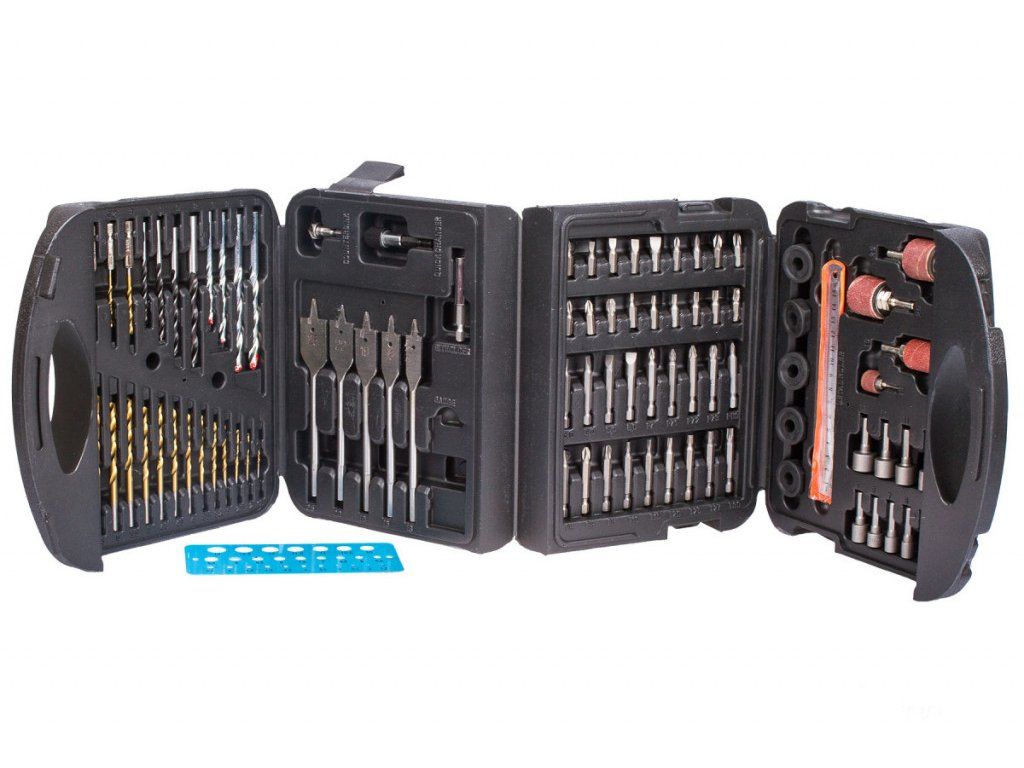 Sada 118 kusů vrtáků a bitů v plastovém kufru obsahuje: