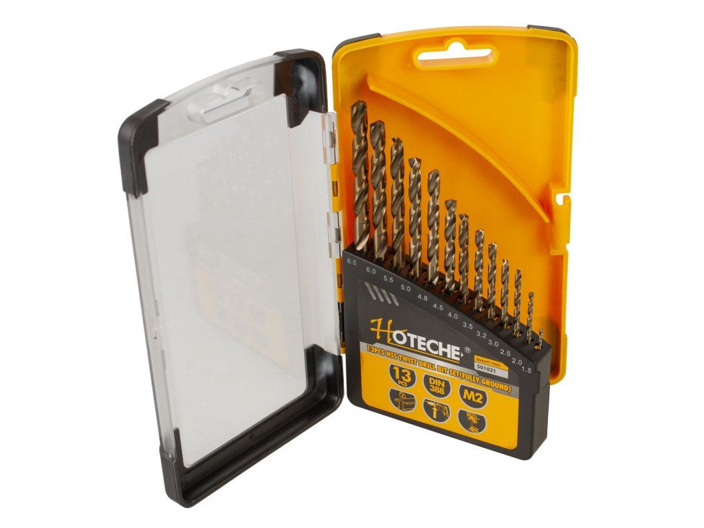 - Rozměry vrtáků: 1.5, 2, 2.5, 3, 3.2, 3.5, 4, 4.5, 4.8, 5, 5.5, 6 a 6.5 mm.