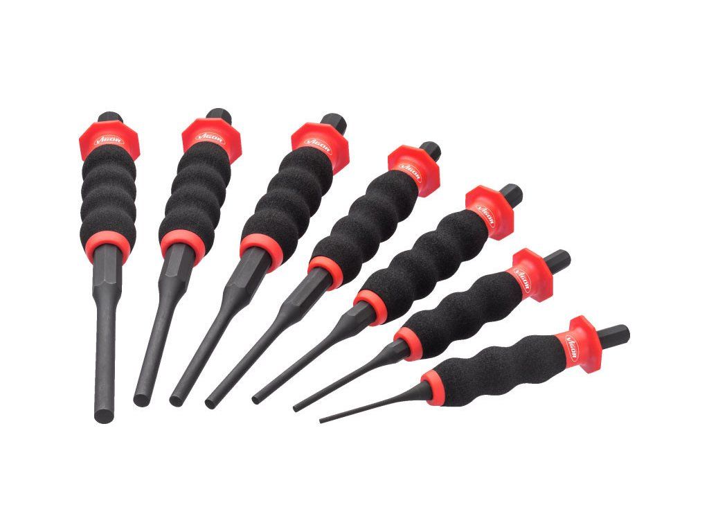 V sadě naleznete 7 různých velikostí vyrážecích trnů s průměrem od 2 do 8 mm.