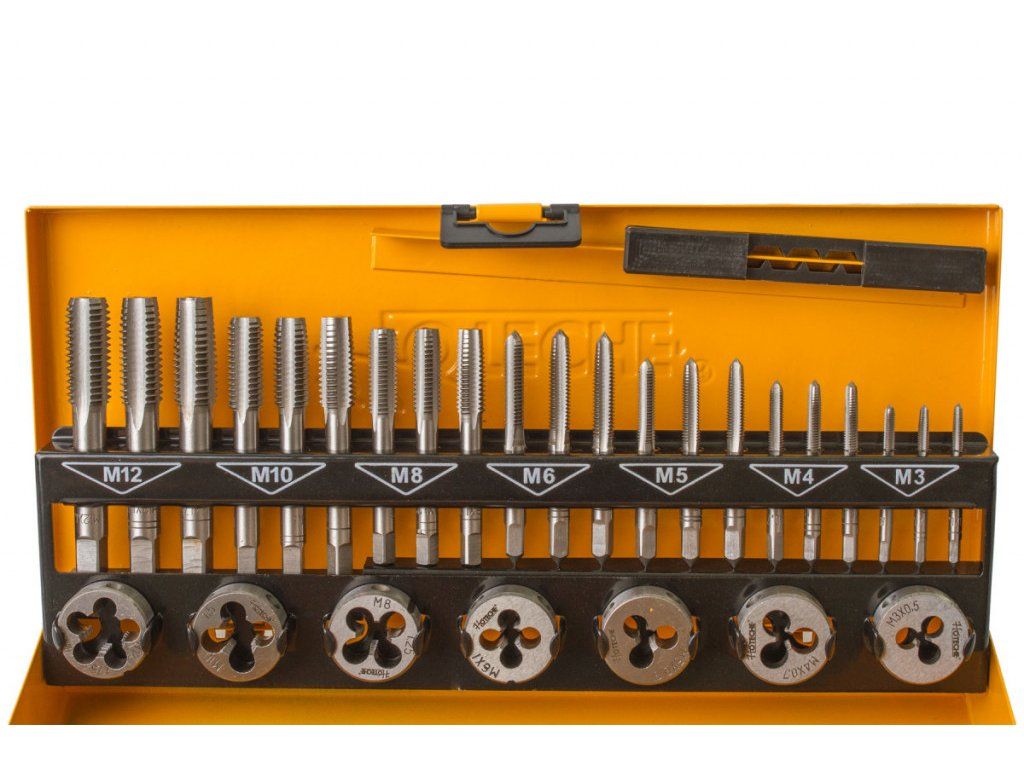 Sada kvalitních závitníků a oček vyrobených z rychlořezné oceli HSS vyrobené značkou Hoteche.