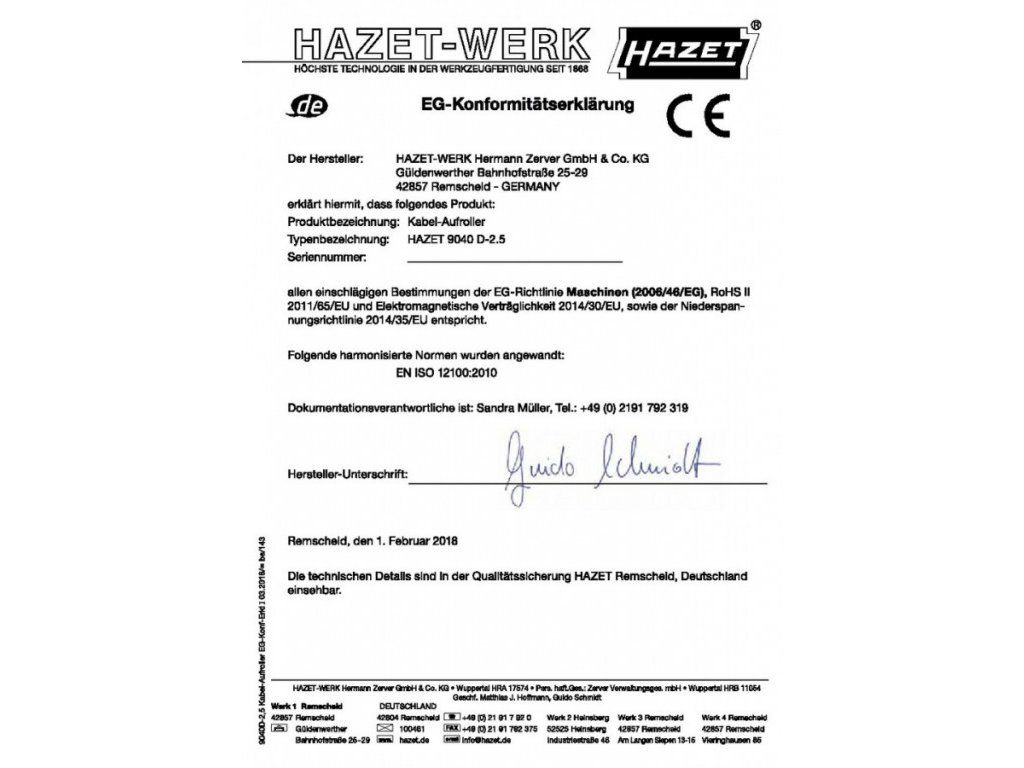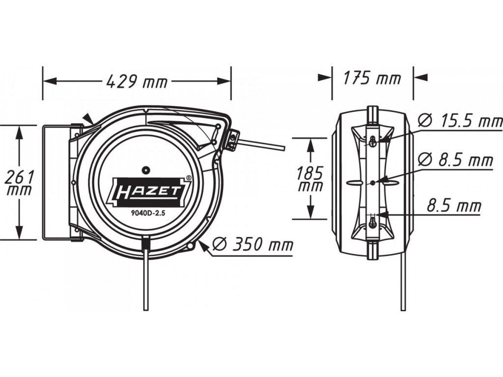 Samonavíjecí prodlužovací kabel (buben) 20m 9040D-2.5 HAZET - HA214631