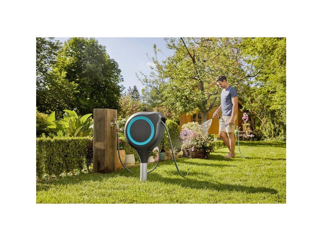 Pro použití jednoduše vytáhněte zahradní hadici na maximálně 20 metrů a můžete okamžitě začít zavlažovat. Integrované uzamykací body v krátkých vzdálenostech zajišťují snadnou manipulaci a automaticky fixují hadici v požadované vytažené délce. Díky modernímu designu lze hadicový box otočit o 360°, čímž se dostanete do všech koutů vaší zahrady.