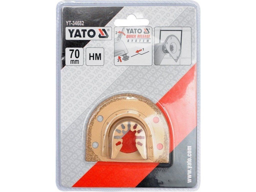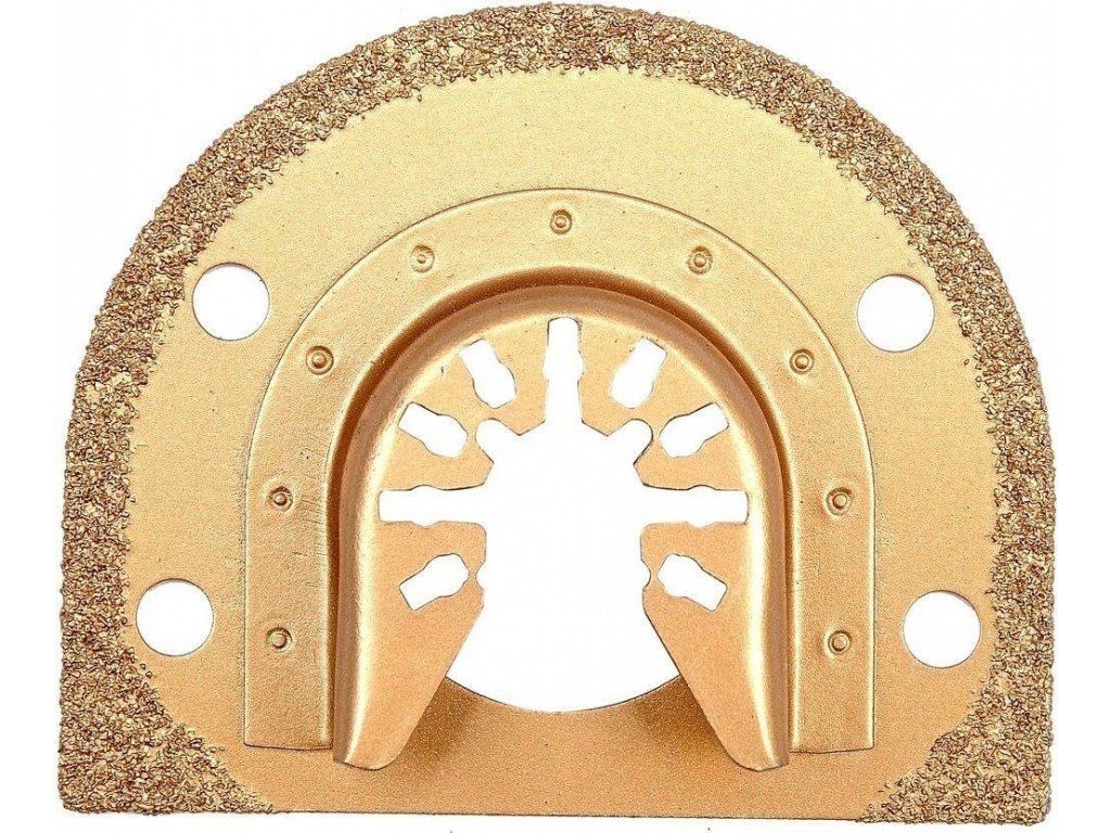 Segmentový řezací nástroj HM s nánosem karbidu wolframu s upínacím systémem OIS, pro řezání stavebních materiálů nař. dlažby, obklady, beton, zdivo. Upínání OIS, dovoluje tento nástroj použít v oscilačních přístrojích značek, jako například Fein, Bosch, Makita, Miwaukee, AEG, Skil, Einhell, Yato, PowerUp, Extol, Worx, Multi Master, Rockwell a mnoho dalších.