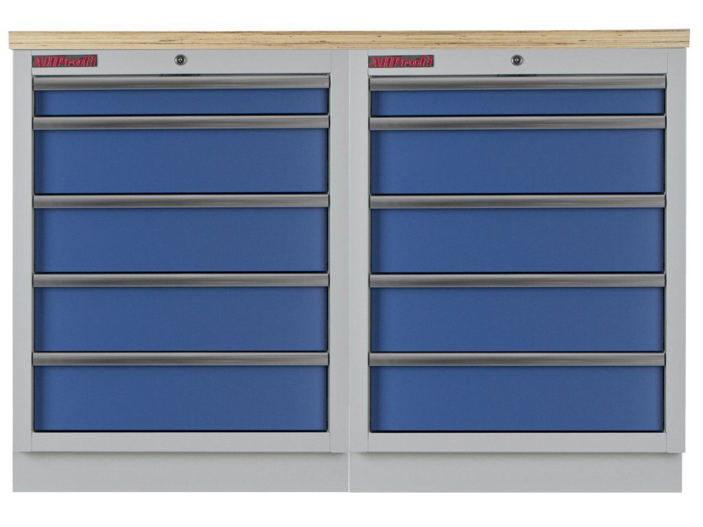 Dílenský nábytek PROFI BLUE s dřevěnou deskou zaujme moderním a profesionálním vzhledem. Kombinace modré RAL 5023 a šedé RAL 7035 barvy se bude vyjímat v každé garáži i dílně.