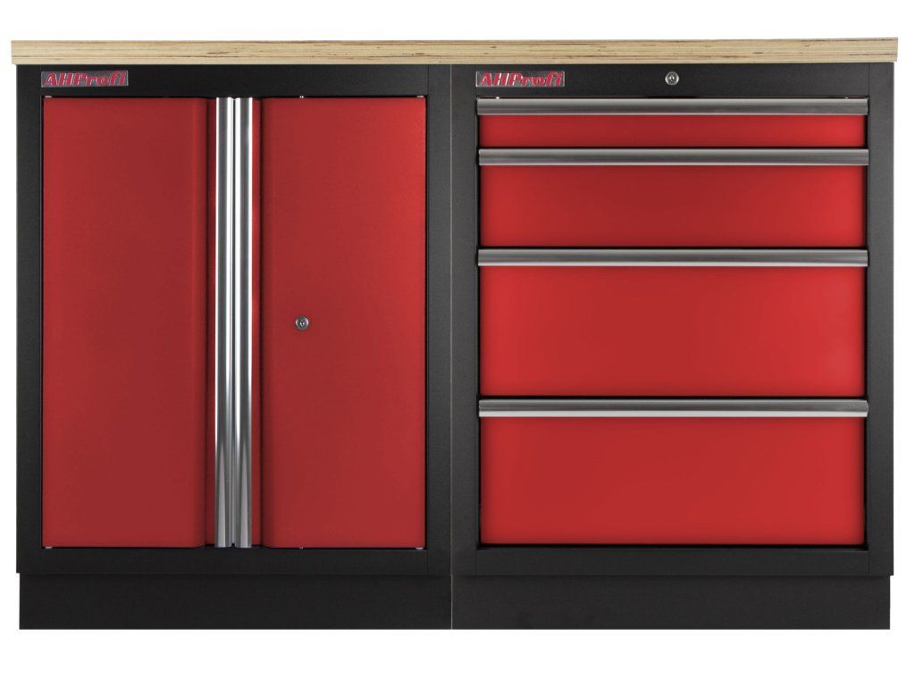 Dílenský nábytek PROFI RED s dřevěnou deskou zaujme moderním a profesionálním vzhledem. Kombinace červené RAL 3031 a černé RAL 9004 se bude vyjímat v každé garáži i dílně.