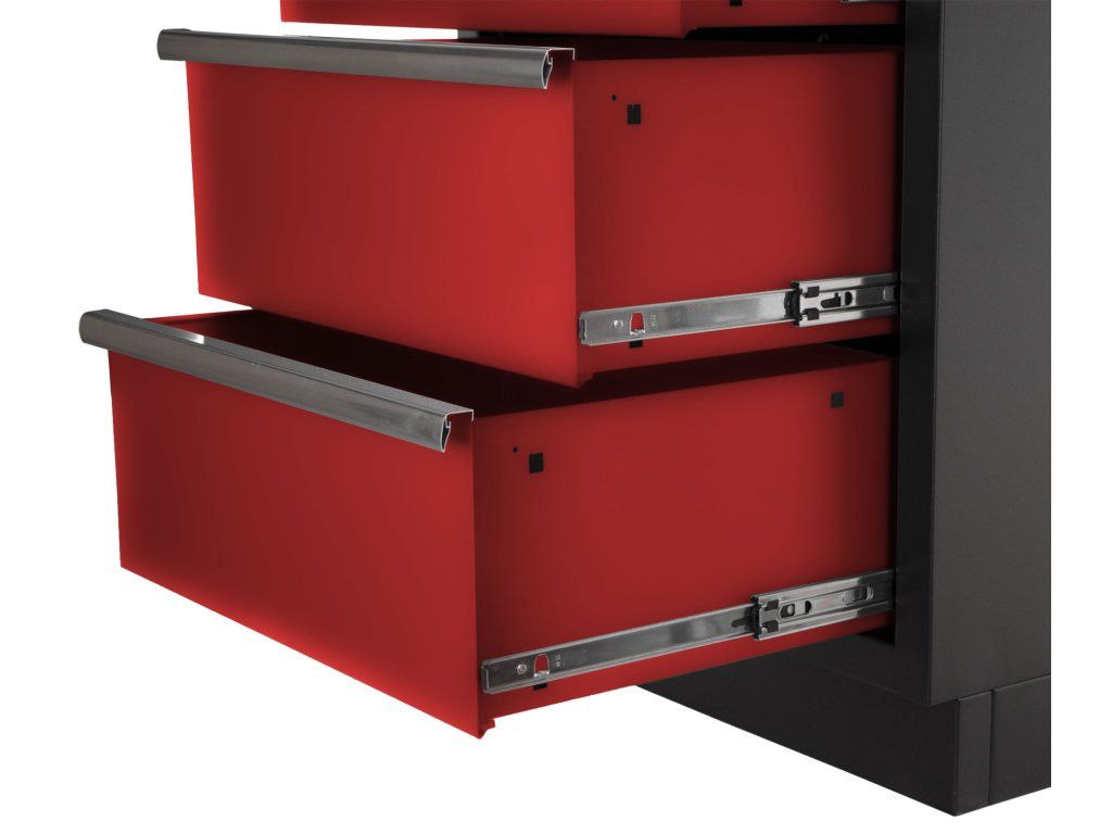 Teleskopické lišty se postarají o 100% vysunutí zásuvek. Získáte tak dokonalý přehled o vašem nářadí.