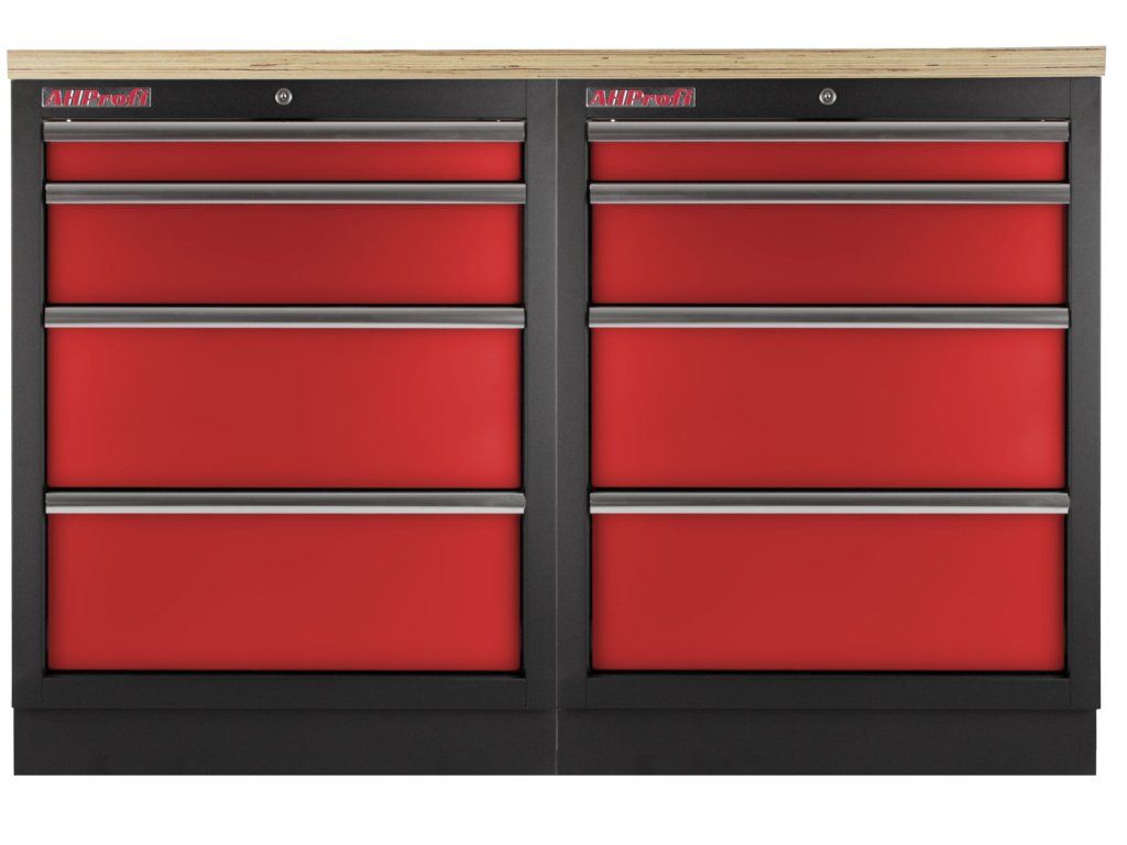 Dílenský nábytek PROFI RED s dřevěnou deskou zaujme moderním a profesionálním vzhledem. Kombinace červené RAL 3031 a černé RAL 9004 se bude vyjímat v každé garáži i dílně.