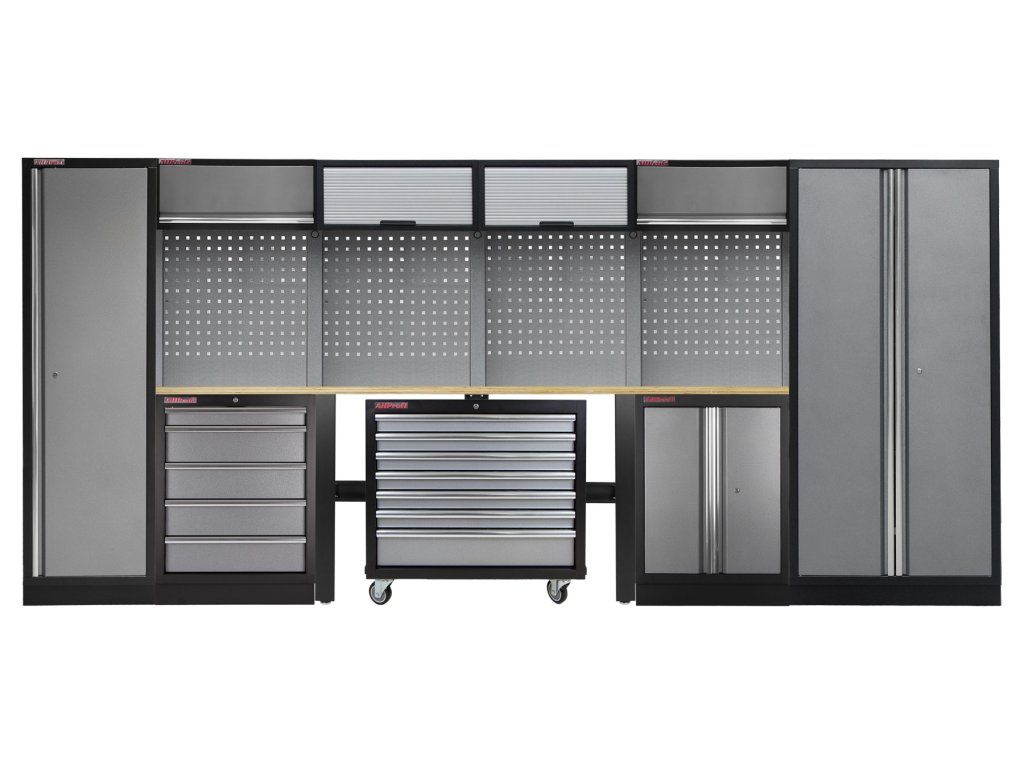 Hlavní předností sestavy je především pojízdný vozík, dvoukřídlá skříňka, úzká a široká vysoká skříň a skříňka s pěti zásuvkami do kterých můžete vložit výplně s nářadím, nebo prázdné, do kterých si vložíte své nářadí. Také nabízíme organizéry na šroubky, které se skvěle hodí na pracovní desku. Výsuvy zásuvek jsou osazeny kuličkovými ložisky.