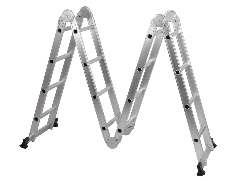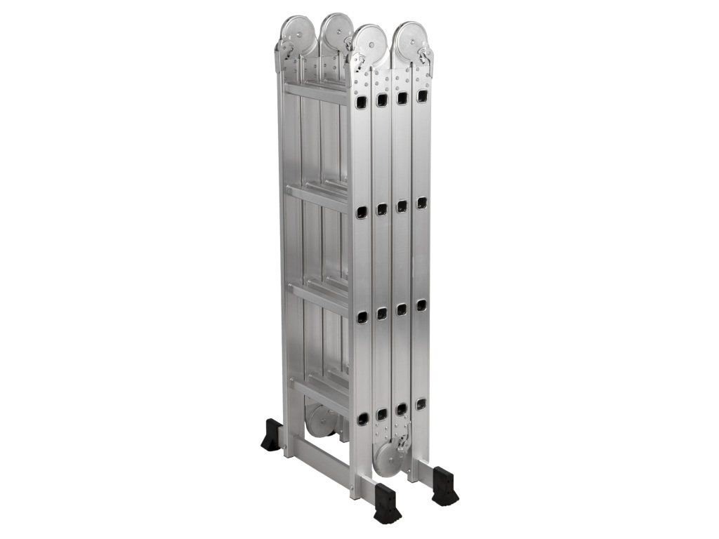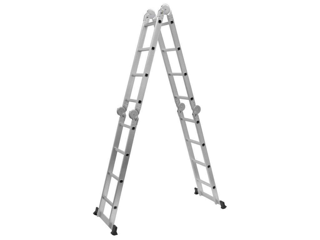 Konstrukci tvoří lehký, ale pevný hliníkový rám se 4 ohebnými klouby s aretací, díky kterým lze žebřík snadno přestavět na štafle nebo klasický žebřík.