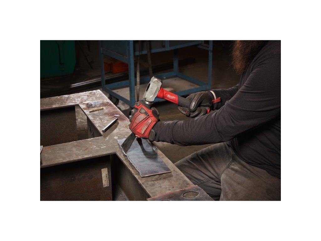 - Univerzálnost dvou čelních ploch: Frézovaná čelní plocha dodatečně zlepšuje úchop a minimalizuje nežádoucí pohyb při tlučení na sekáč nebo při zatloukání velkých hřebíků, hladká čelní plocha zabraňuje poškození materiálu.