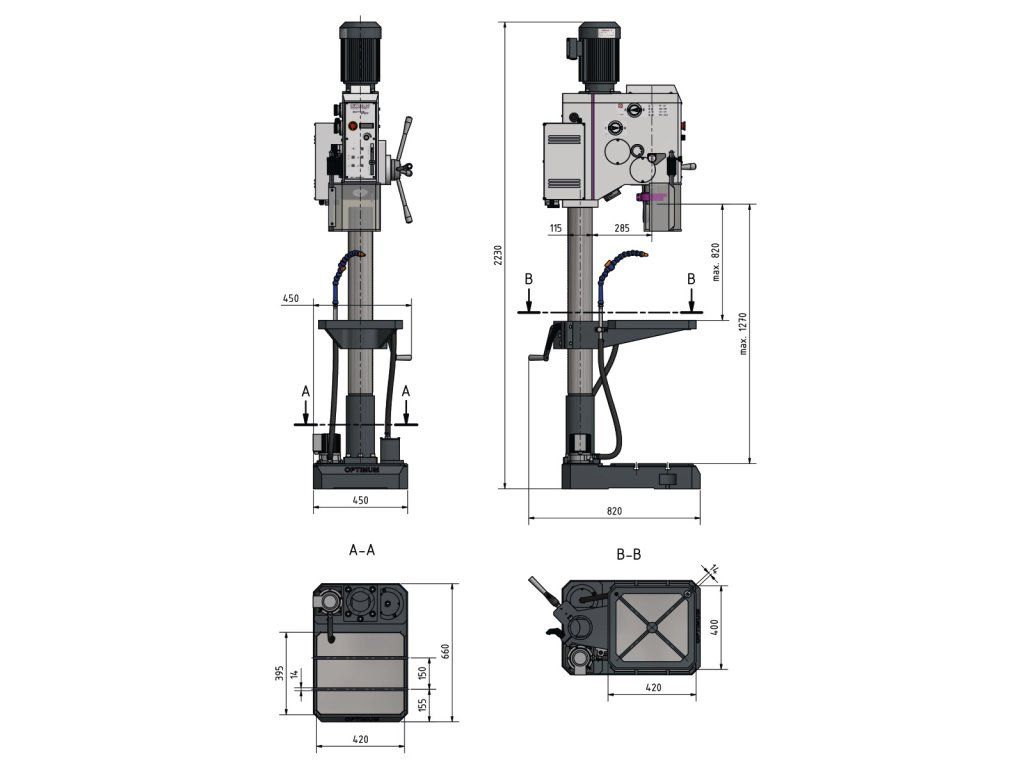 | Max. vzdálenost vřetene a stolu: | 820 mm |