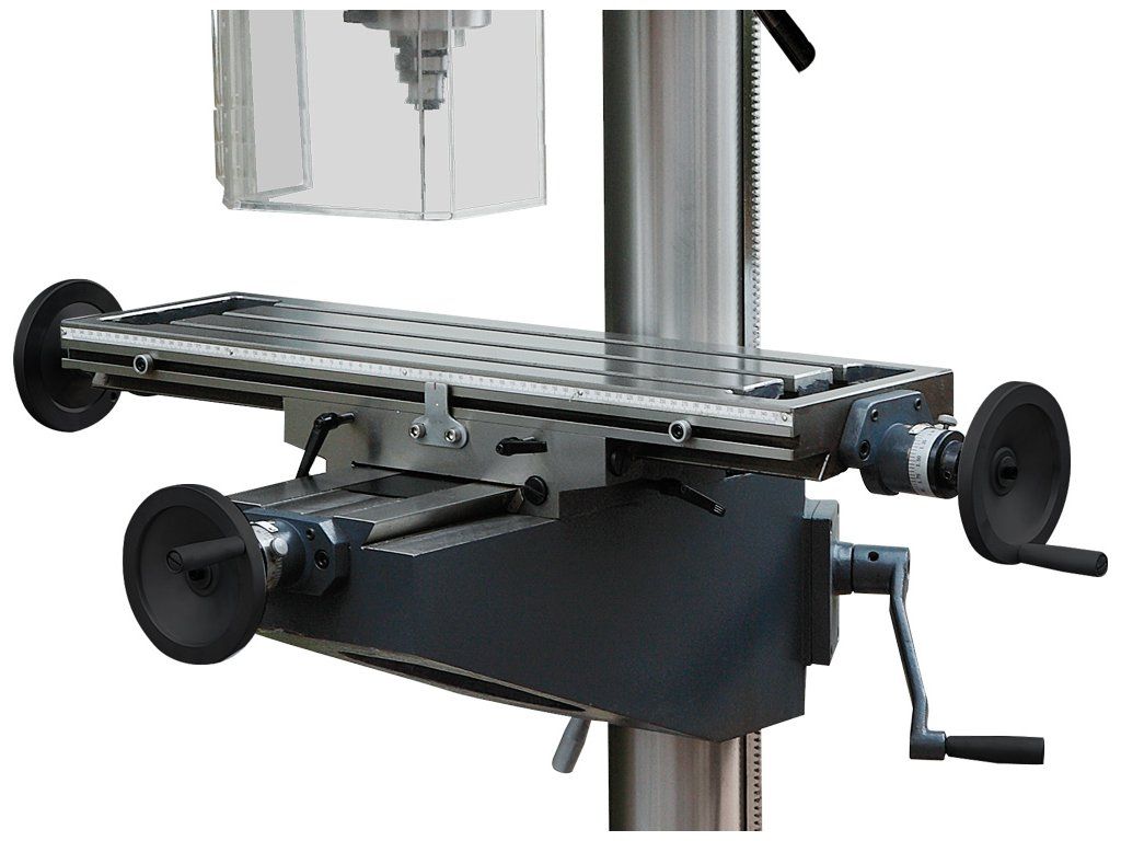 - Výškově přestavitelná vrtací hlava i křížový stůl