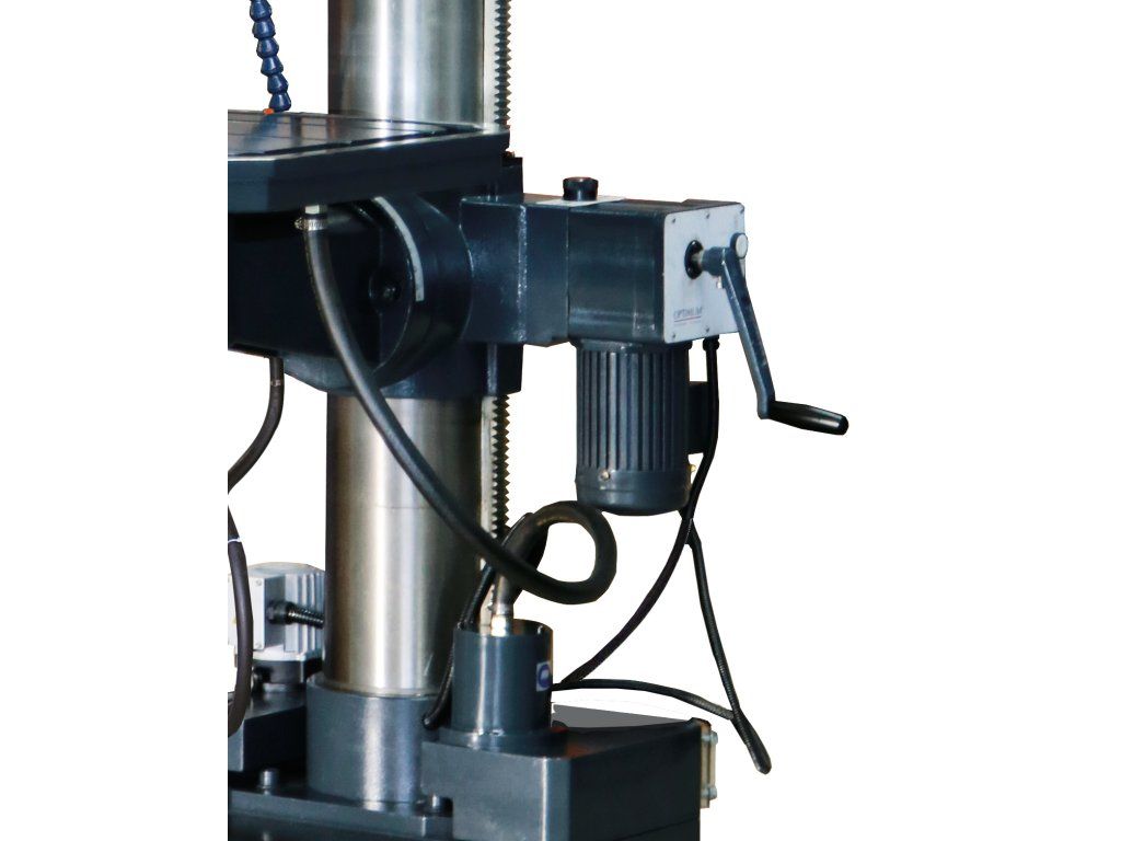 Těžká převodová vrtačka se strojním posuvem a závitovacím cyklem a plynule nastavitelnou regulací otáček vřetene, vhodná pro průmyslové použití.