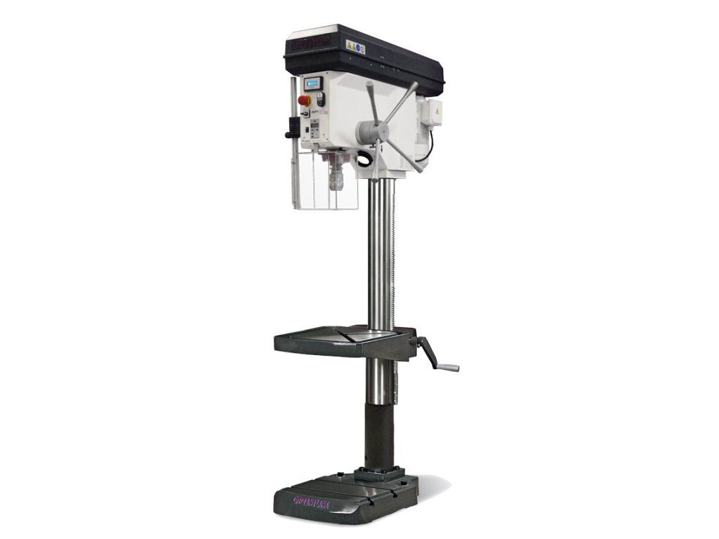 Sloupová vrtačka s plynulým nastavením otáček pomocí mechanického variátoru.