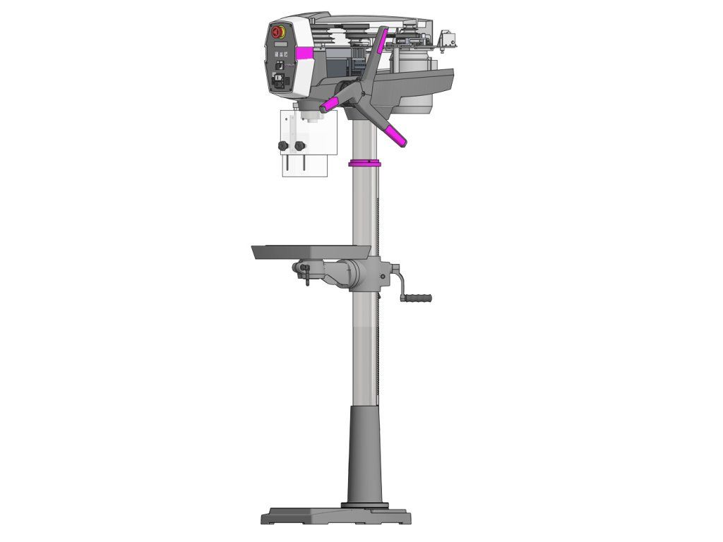Sloupová vrtačka s řemenovým pohonem a moderním designem.