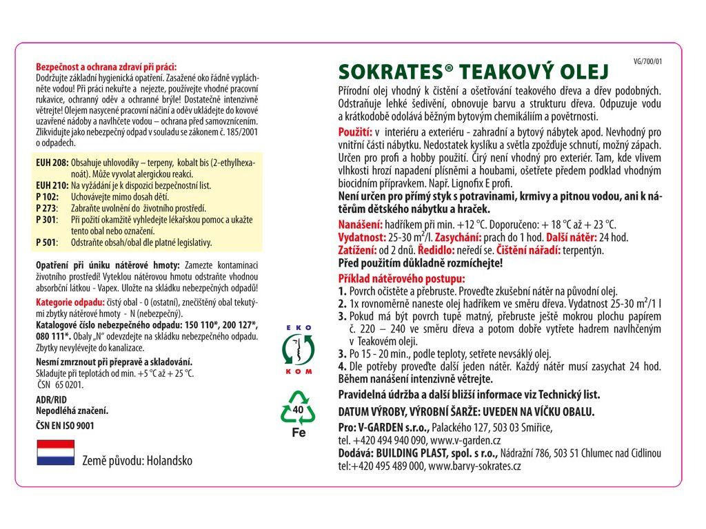 Sokrates V-garden Teak olej 0,6l | 1807570013