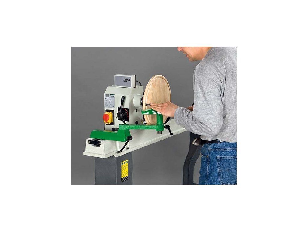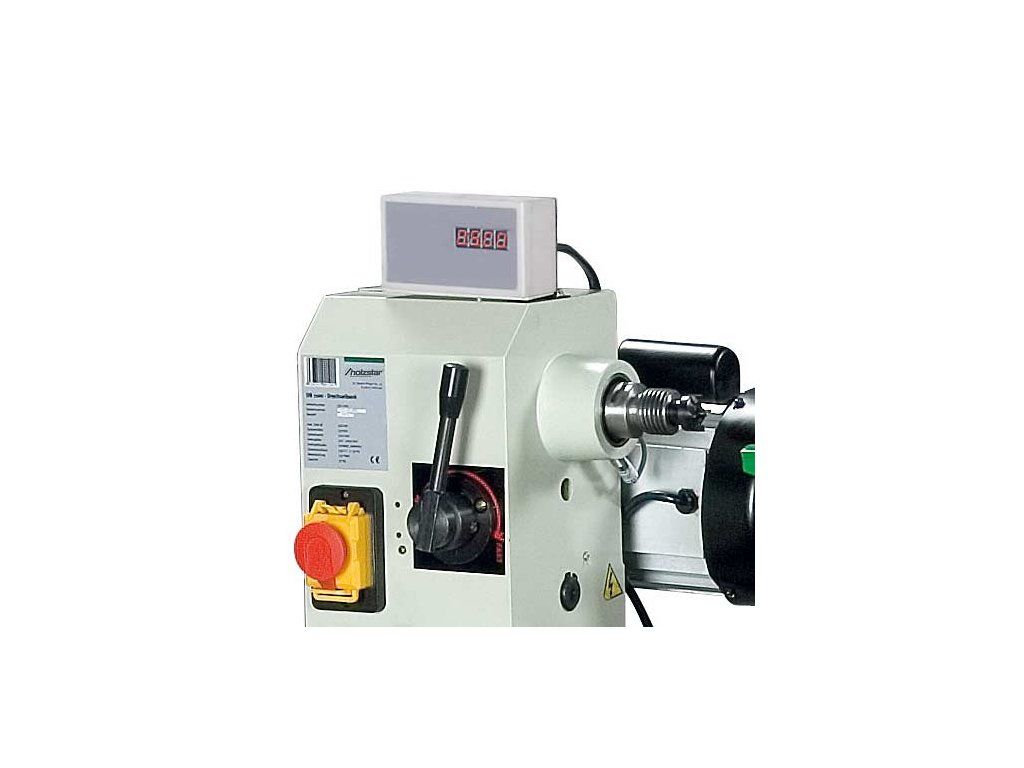Soustruh na dřevo s proměnlivou regulací a digitální indikací počtu otáček.