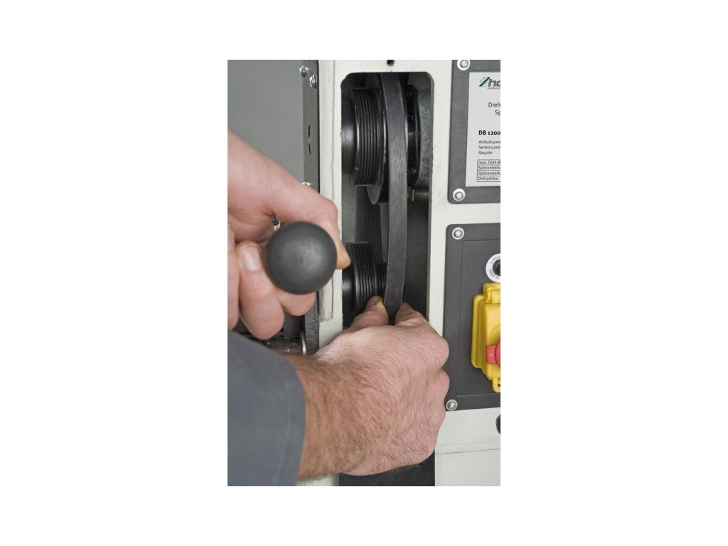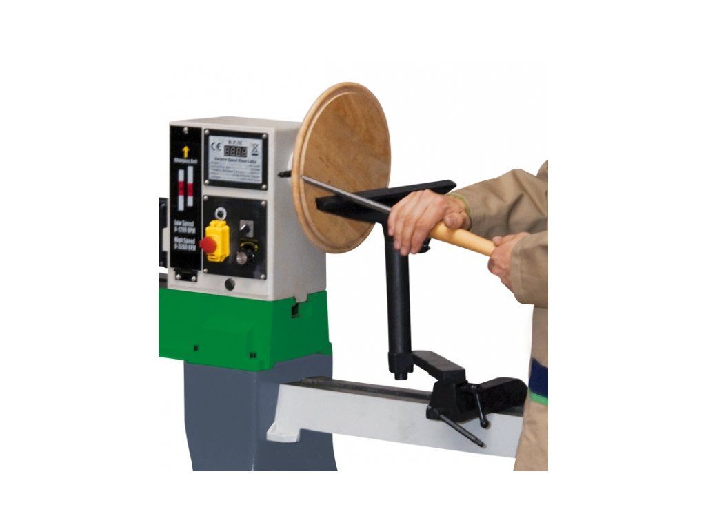 Soustruh na dřevo s proměnlivou regulací a digitální indikací počtu otáček.