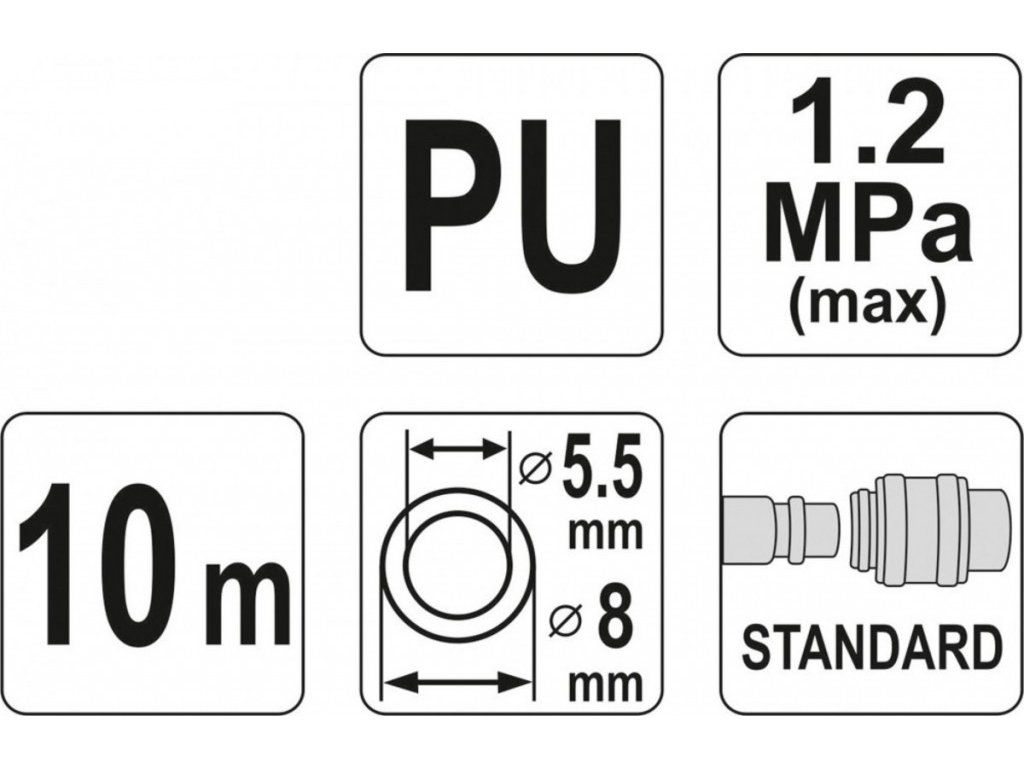 Spirálová vzduchová hadice 10m, PU průměr vnitřní 5,5mm, vnější 8mm - YT-24202
