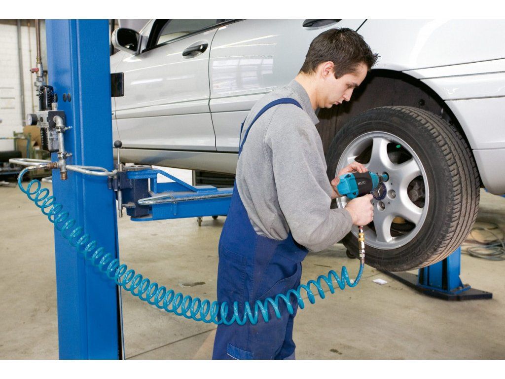Pro urychlení práce s pneumatickým nářadím je vzduchová hadice z obou stran zakončena rychloupínacími spojkami.