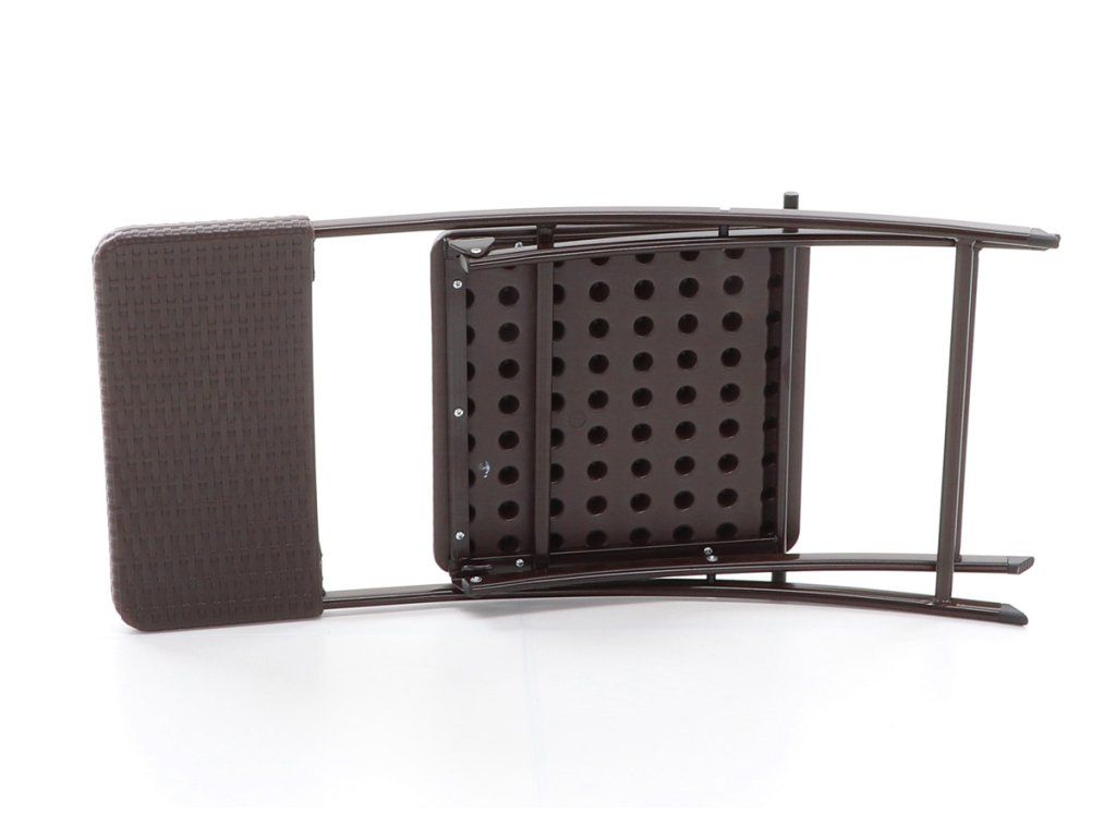 Skládacích židle z ocelových profilů povrchově dokončena komaxitovou barvou, čalounění je v imitaci umělého ratanu z lisovaného plastu s UV filtrem, určená do interiérů, exteriérů a pergolových prostor.