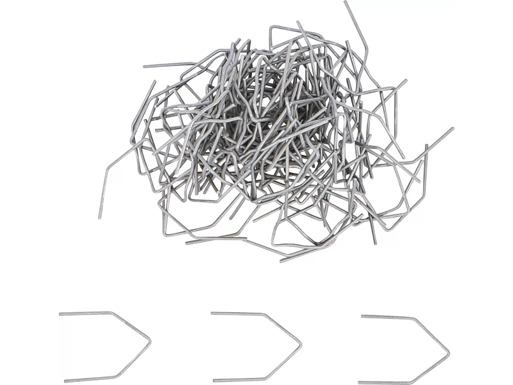 Sada 100 ks kovových sponek pro svářečky plastů určených na opravu prasklin nebo ulomených částí plastových dílů