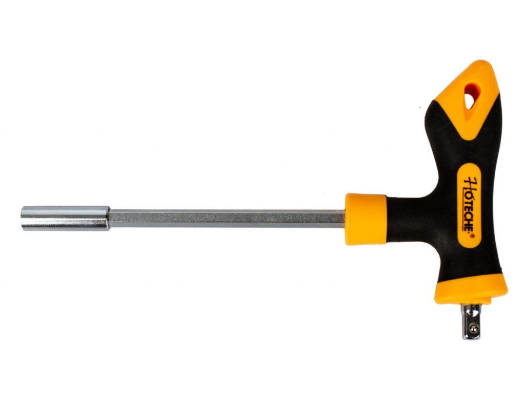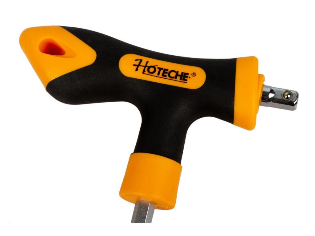 Ruční šroubovák typu T v sadě s nástrčnými klíči a bity vyrobené značkou Hoteche. Balení nářadí je vyrobeno z Cr-V ocele. Sada má 331 g. Délka celého šroubováku je 180 mm a šířka 105 mm. Vhodné pro běžné uživatele i profesionály.