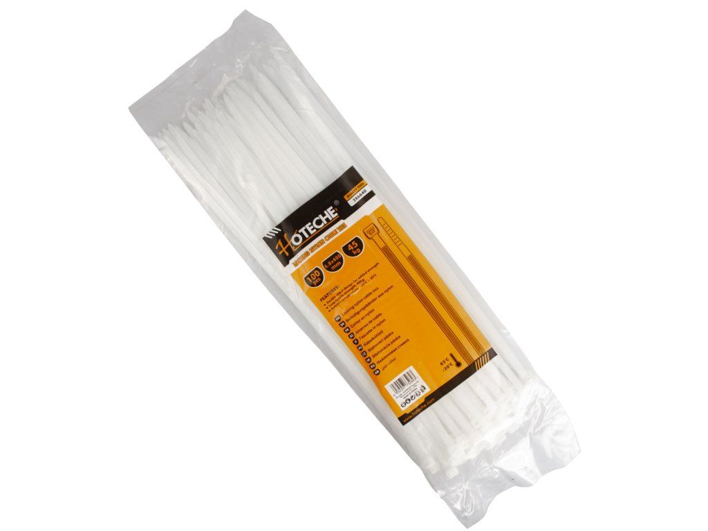 Balení 100 ks bílých stahovacích pásek tzv. binderů pro stahování, kabelových svazků apod.