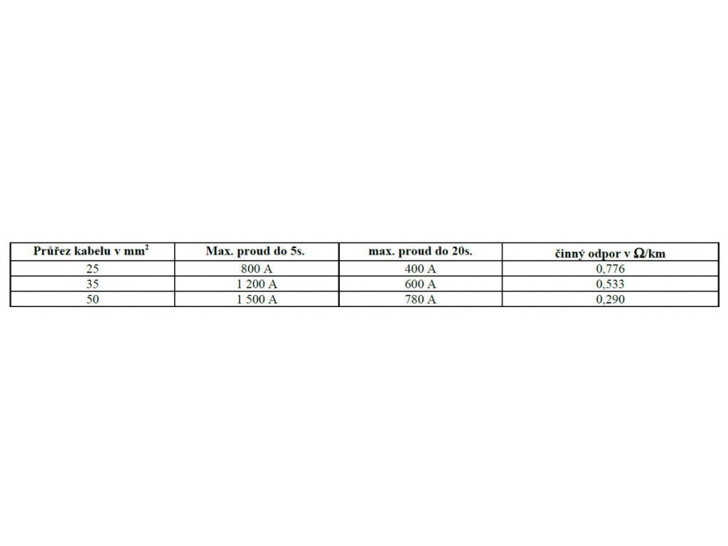 - Průřez kabelu: 25 mm.