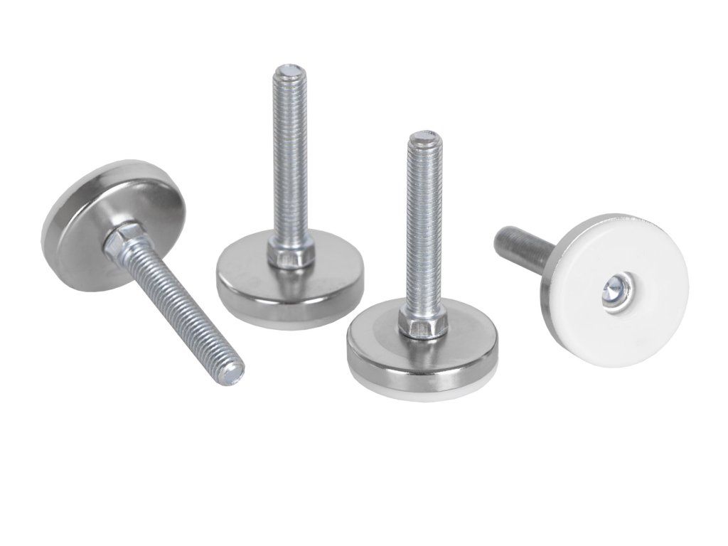 Nožičky slouží k vyrovnání nerovností podlahy a jsou přímo určené pro PROFI dílenský nábytek, který má v sobě zabudované matice pro jejich použití.