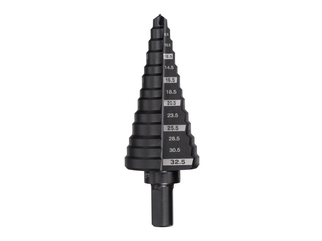 - Stupňové vrtáky jsou ideální pro vrtání do materiálů: - Železné & neželezné kovové plechy, profily a trubky. - Měď, mosaz a hliník. - Nerezová ocel. - Plast. - Maximální tloušťka materiálu 4 mm. - Chcete-li zajistit optimální životnost nářadí doporučujeme použití chladiva.