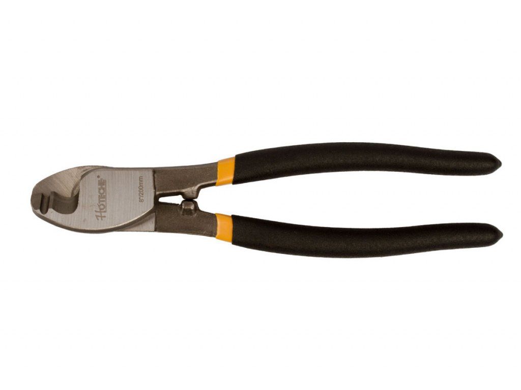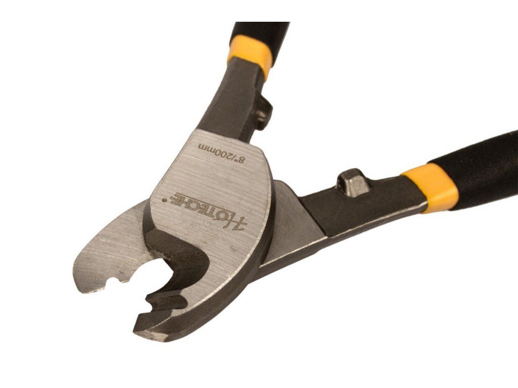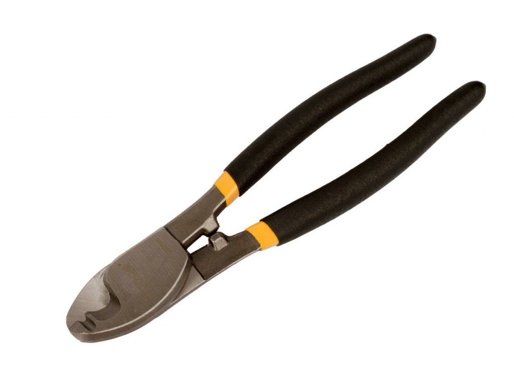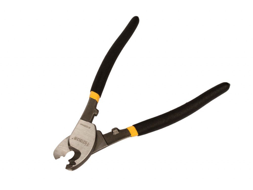 Kabelové nůžky o délce 215 mm. Dvě drážky na měděné a hliníkové kabely o průměru 3,5 a 10 mm. Není vhodné s těmito nůžkami stříhat ocelové dráty.