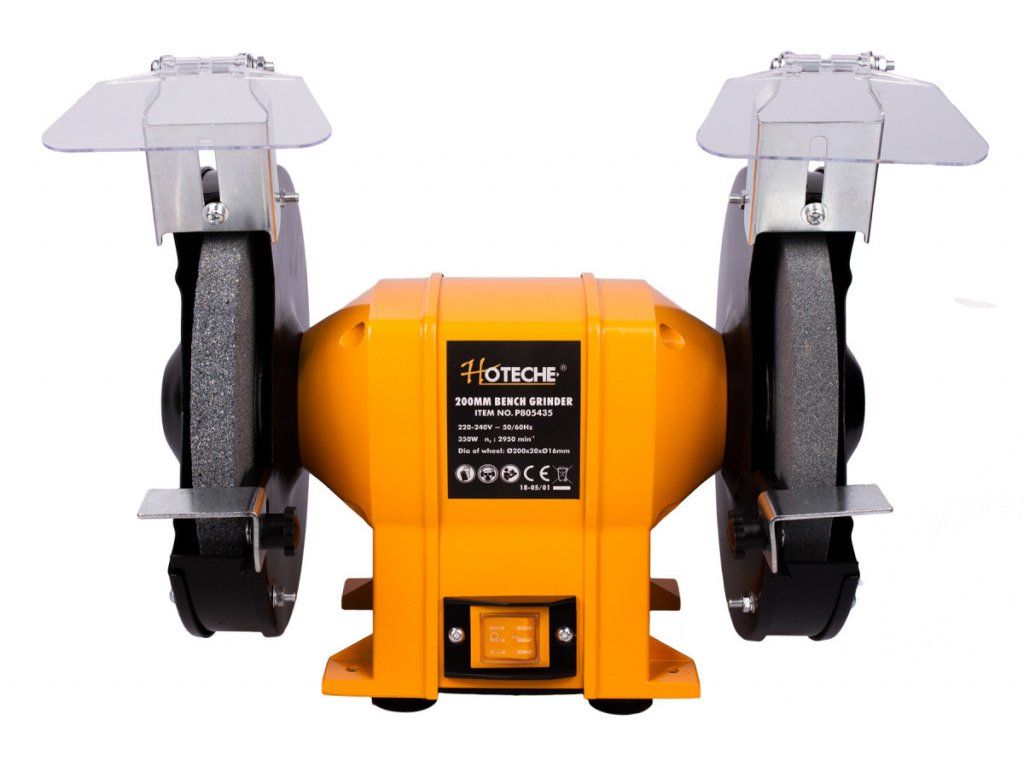 Stolní dvoukotoučová bruska značky Hoteche s dvěma brusnými kotouči o průměru 200 mm a příkonu 350 W je vhodným pomocníkem do každé dílny i garáže. Dvoukotoučová bruska je vhodná pro obrábění kovů ve dvou různých hrubostech bez nutnosti výměny kotouče. Brusné kotouče jsou hrubé a jemné zrnitosti a hravě s nimi zvládnete ostření nástrojů, broušení a leštění kovových předmětů či odstraňování zbytků materiálů. Rozměry kotoučů jsou: ø 200x20 mm a ø hřídele 16 mm.