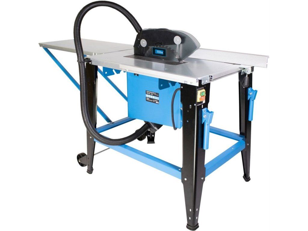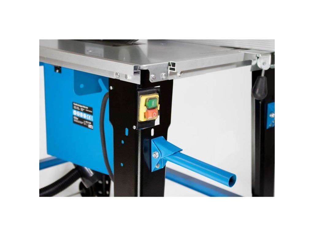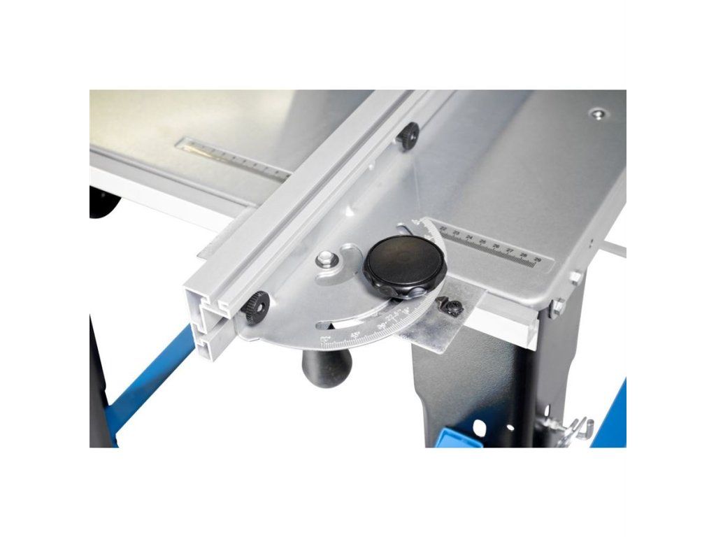 Plynule nastavitelná výška/úhel sklonu pilového kotouče 90° - 45° (→ řezy na pokos), pozinkovaný pracovní stůl (→ d x š: 800 x 553 mm), snadná manipulace díky pojezdovým kolům/výklopným transportním rukojetím.