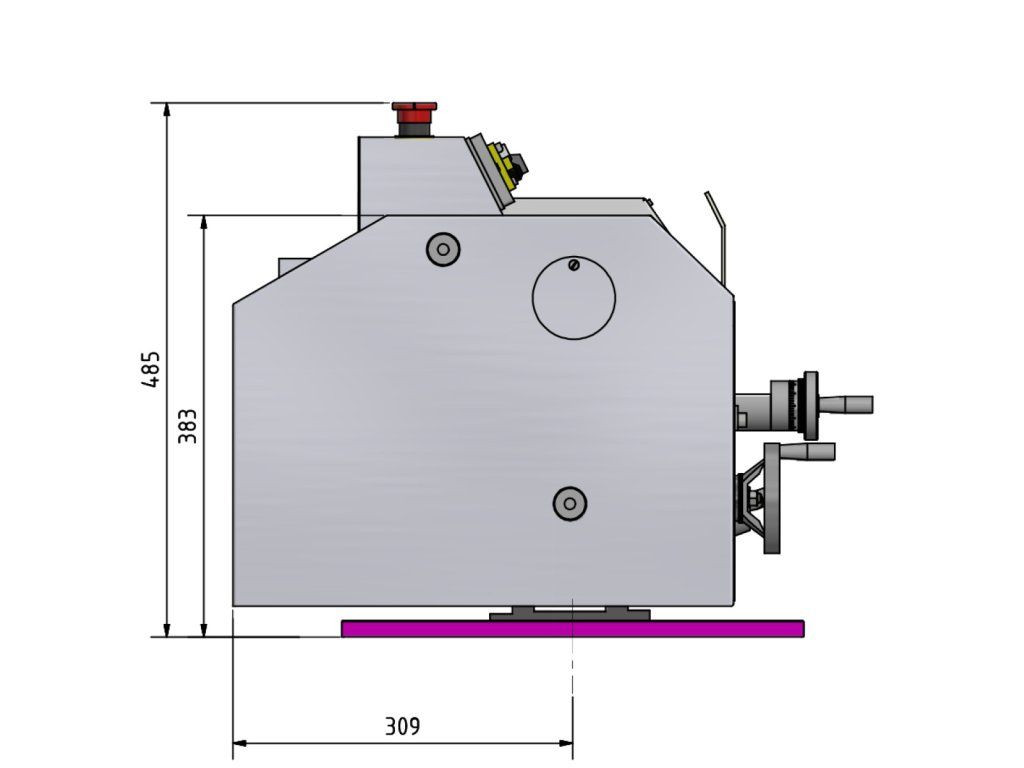 - Hlavní vypínač (IP 54) s podpěťovým spouštěčem, nouzový vypínač s aretací