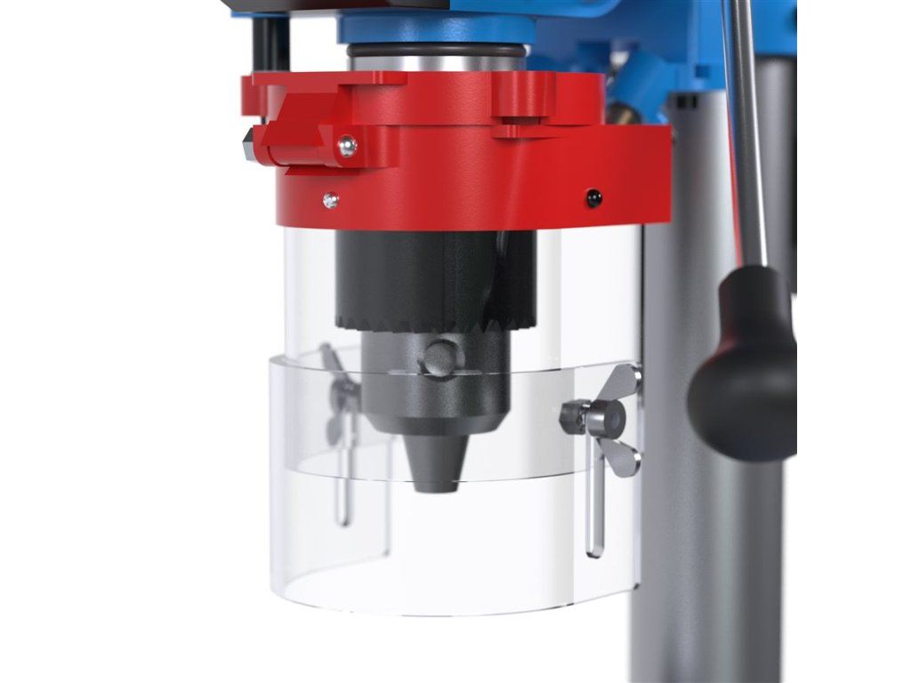 Vrtačka využívá pohon klínovým řemenem s plynulým přepínáním otáček pomocí stupňovité řemenice, což zaručuje ideální přizpůsobení typu materiálu.