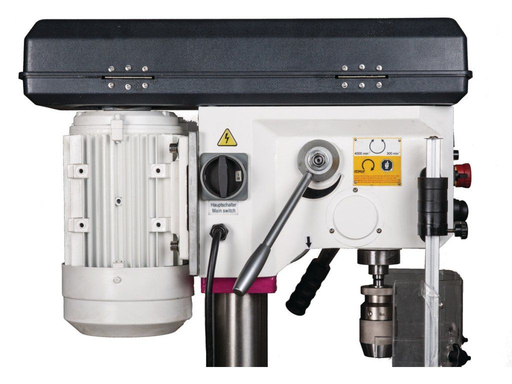 Sloupová vrtačka s plynulým nastavením otáček pomocí mechanického variátoru.