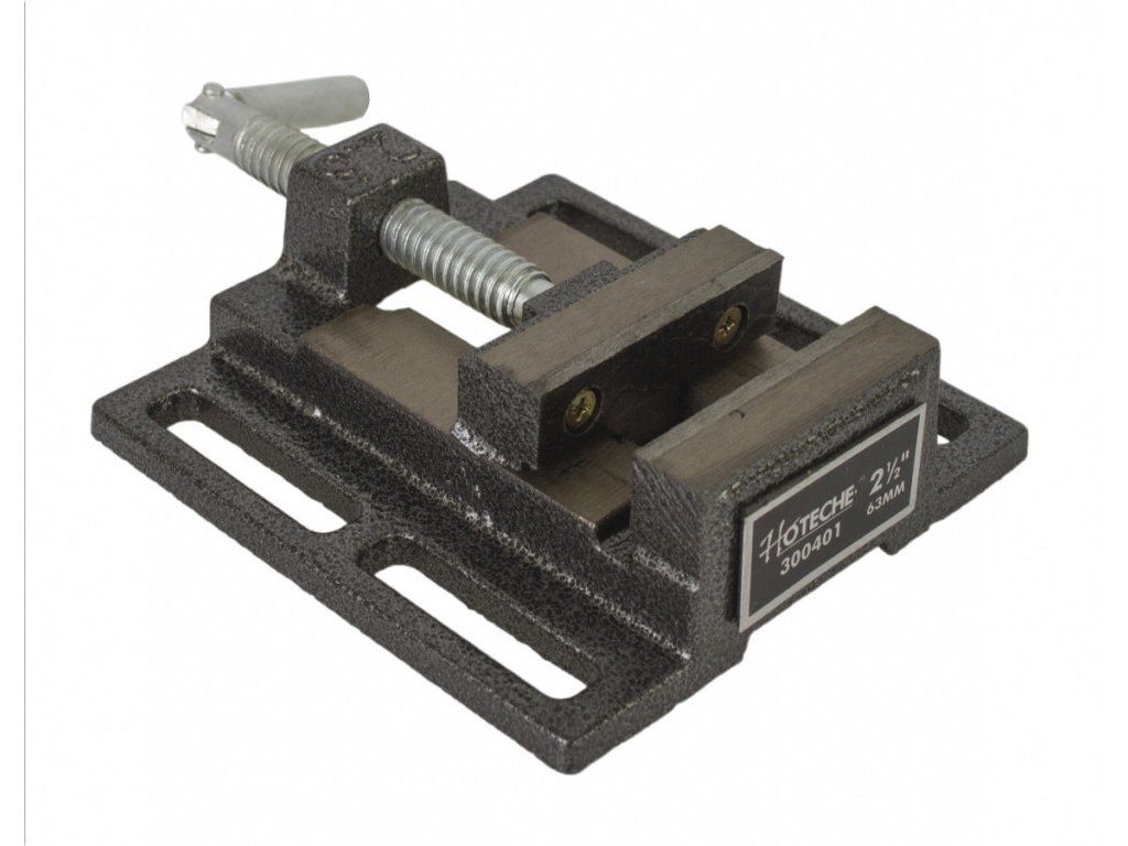 Litinový strojní svěrák, určený k montáži na pracovní stoly nebo pod stojanové vrtačky.