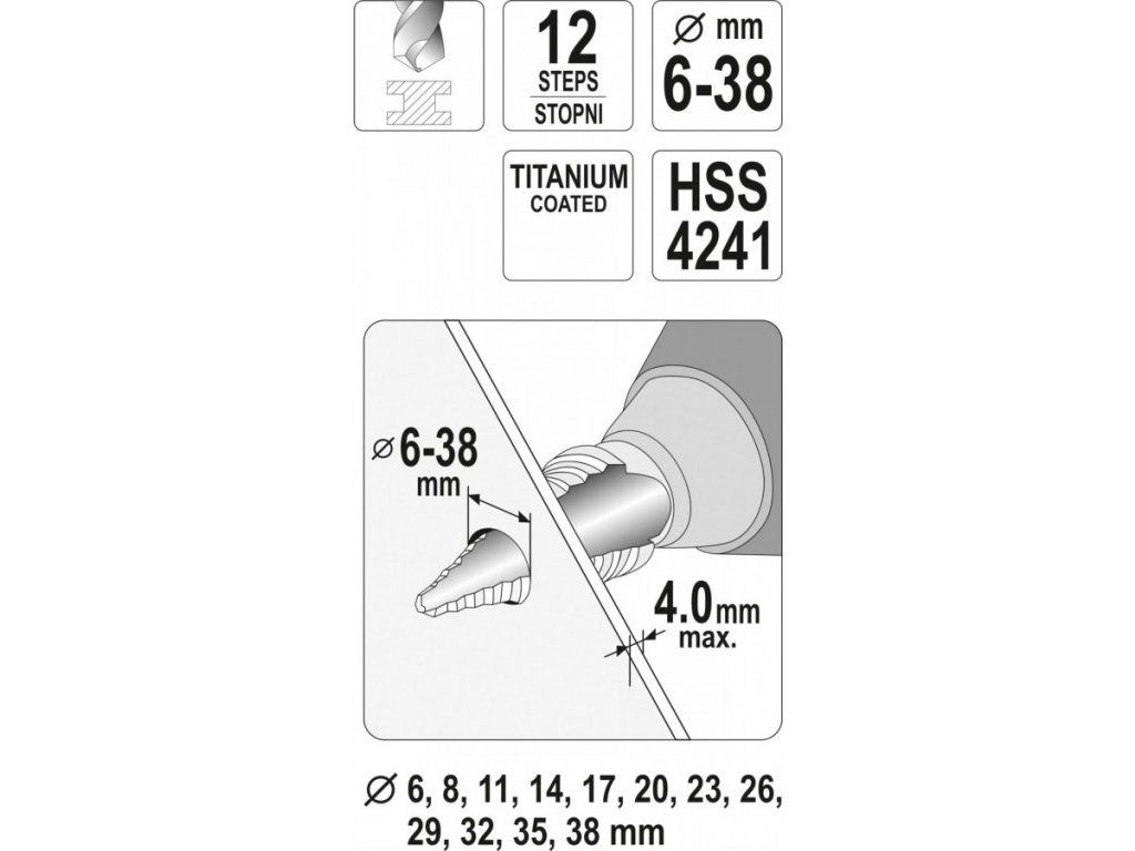 Stupňovitý kuželový vrták 6-38mm - YT-44740