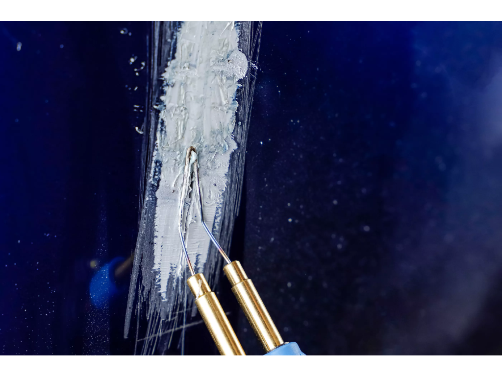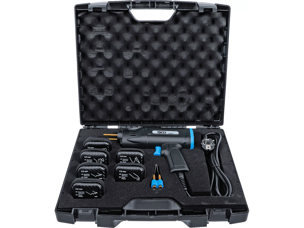 Svářečka plastů s výkonem 75 W určená na opravu prasklin nebo ulomených částí plastových dílů.