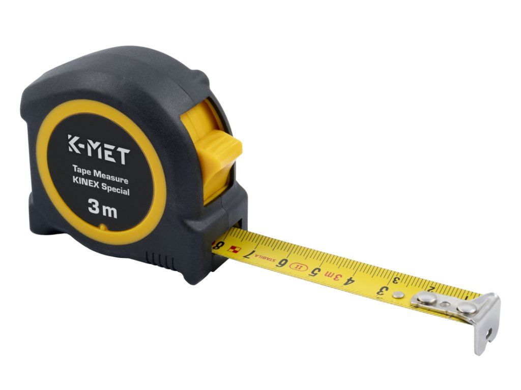 Svinovací metr KINEX/K-MET 3m, žlutá páska, šíře 16mm- Kompaktní kapesní svinovací metr s metrickou stupnicí.