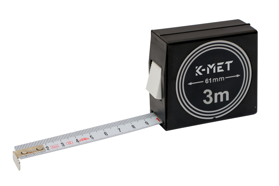 Svinovací metr KINEX/K-MET 3m, šíře pásky 13 mm. Třída přesnosti 2. Metry jsou vhodné ke Kalibraci pro certifikaci ISO. ČSN 25 1141 (ČSN 25 1146).