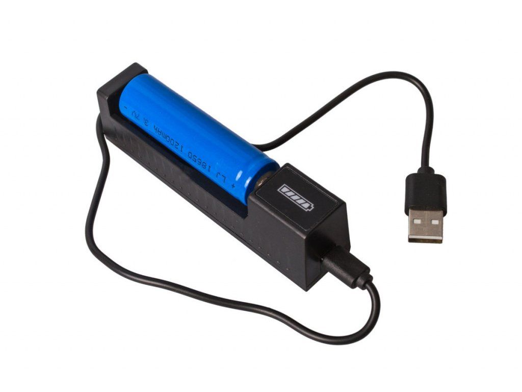 Svítilna funguje na baterii. Buď lze používat 1x lithiovou baterii, kterou můžete dobíjet přes kabel USB, a nebo 3x alkalickou baterii AAA.