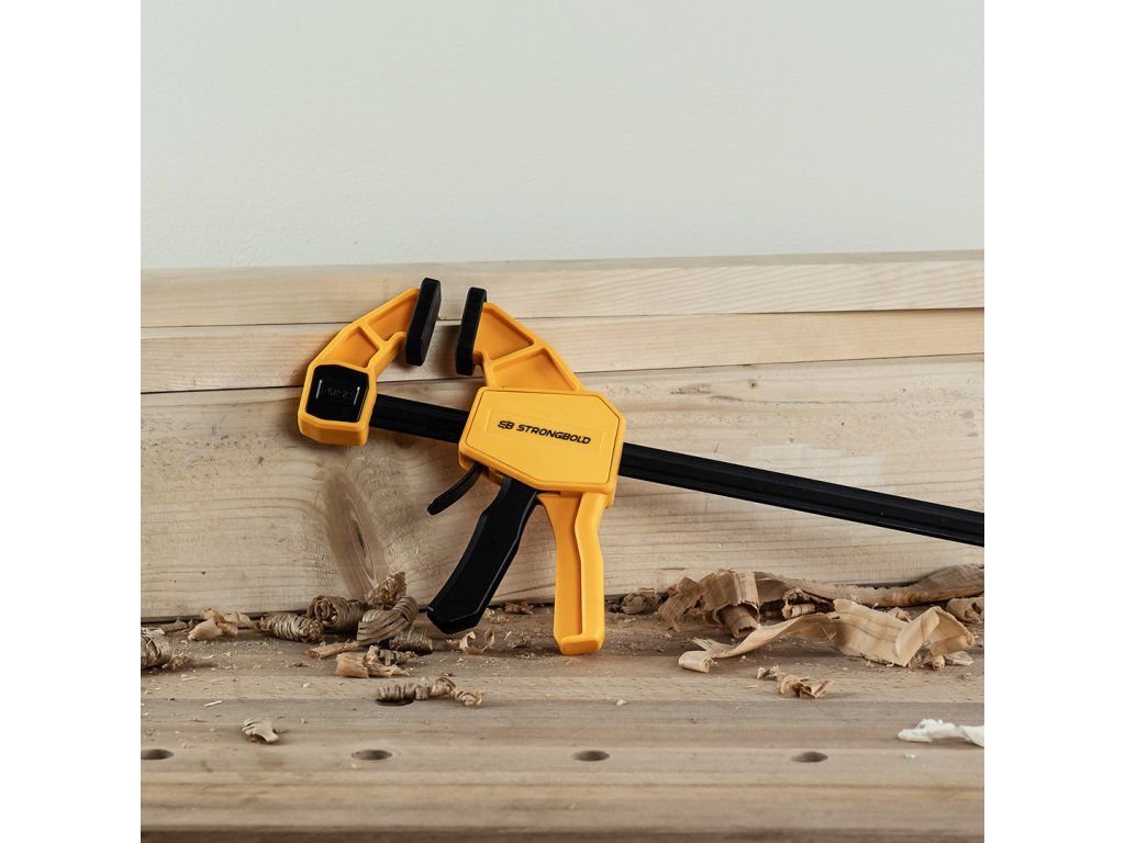 Pomocí těchto svorek od značky STRONGBOLD® si snadno připevníte materiál k jakémukoliv stolu, hoblici nebo pracovní ploše. Odolná ale lehká svorka, která je ideální pro menší projekty do velikosti materiálu maximálně 300 mm. Dostupné velikosti: 150 / 200 / 250 / 300 / 450 / 600 mm.