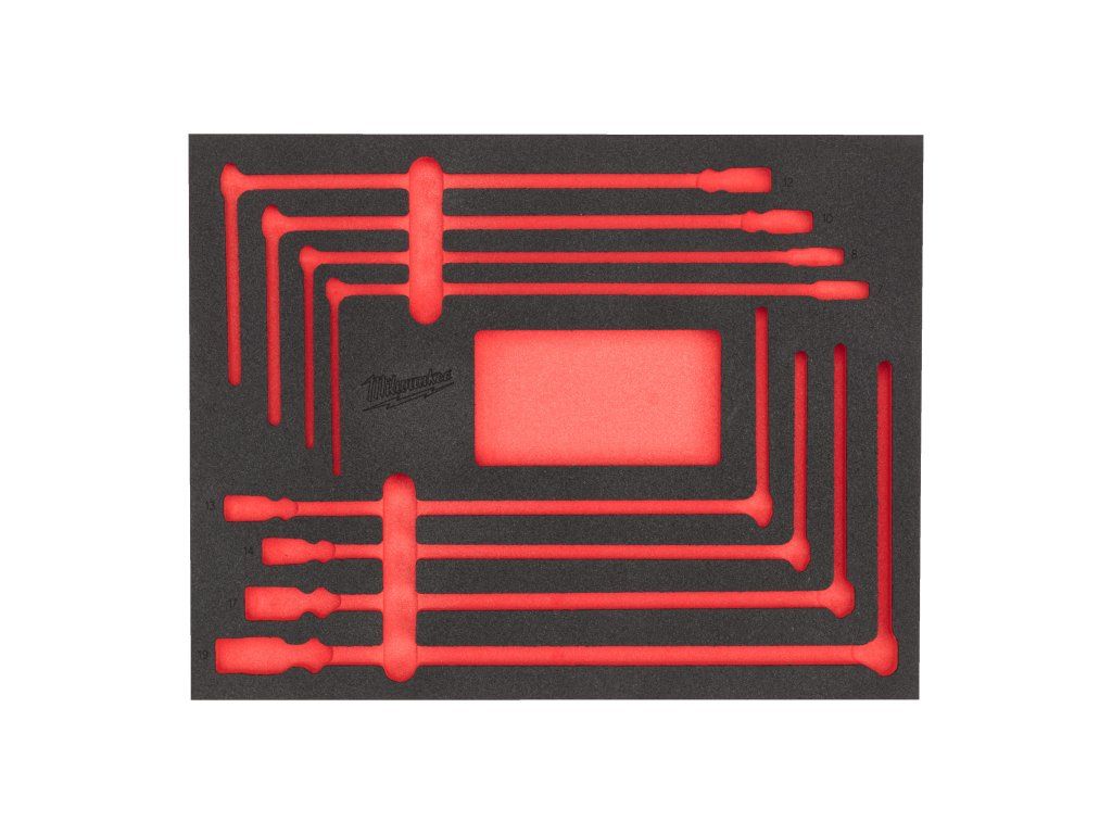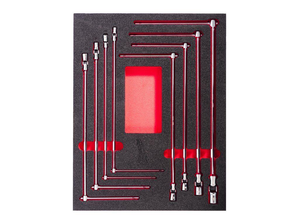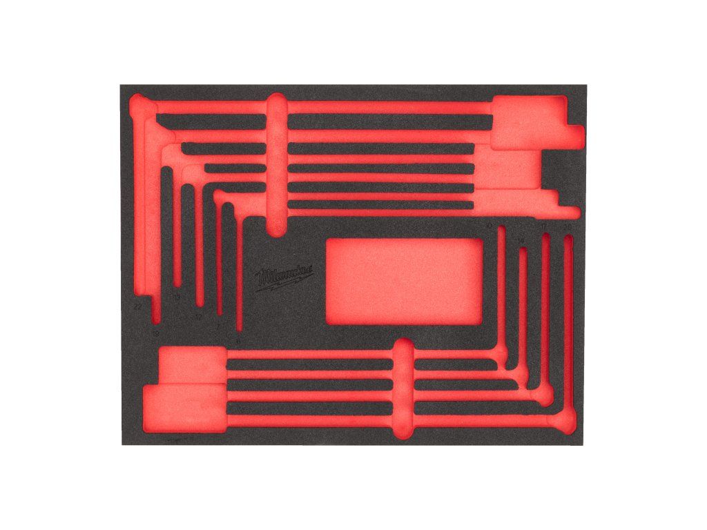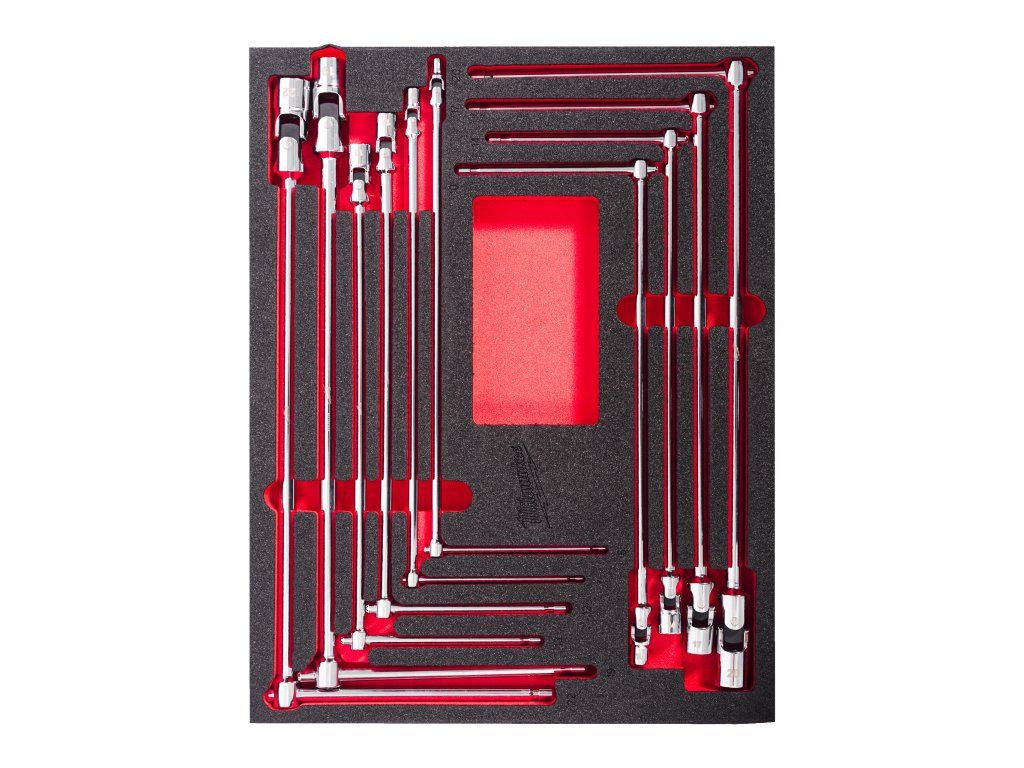 - Prémiová pěna pro delší životnost, laserem vyřezávané velikosti pro snadnou a rychlou identifikaci velikosti a červené pozadí pro rychlou identifikaci chybějícího nářadí.