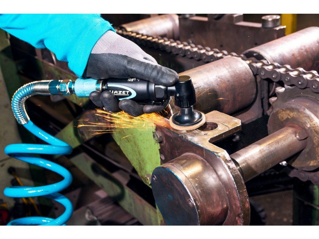 Rukojeť je s protiskluzovou úpravou, jak je u značky Hazet obvyklé. Odvětrávání zde funguje přes rukojeť směrem dolů.