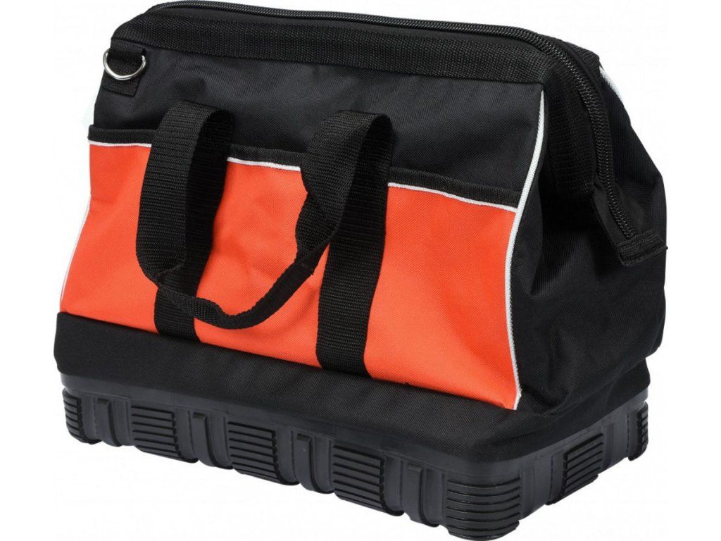 Velká, prostorná taška na nářadí zhotovená z odolného polyesteru 600D s voděodolným dnem z gumy.